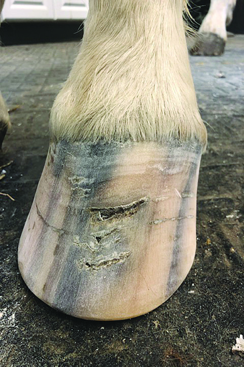 “Horse hoof cracks can be secondary to something else,” says Bras, who often sees cracks related to limb conformation. “Realistically, there is not a perfect horse, but saying that hoof cracks are due to hereditary issues is a cop out, because there are other factors besides conformation and genetics.”