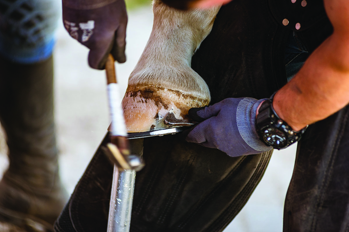 “The farrier looks at things from the outside in, while the veterinarian is looking at it from the inside out, thinking of interior structure problems in the hoof that may reveal outer signs, like cracks,” says Bras. “A farrier and a veterinarian provide very different services, but with you as the horse’s owner, it’s a team of three.”