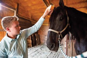 Rilee loves working with Cole, who is a whopping 18.1 hands tall and weighs over 1,800 pounds. Everything is bigger when it comes to draft horses. Cole eats a big bucket of grain and supplements twice a day, along with a full bale of hay. And just one of his horseshoes is as wide as Rilee’s head!