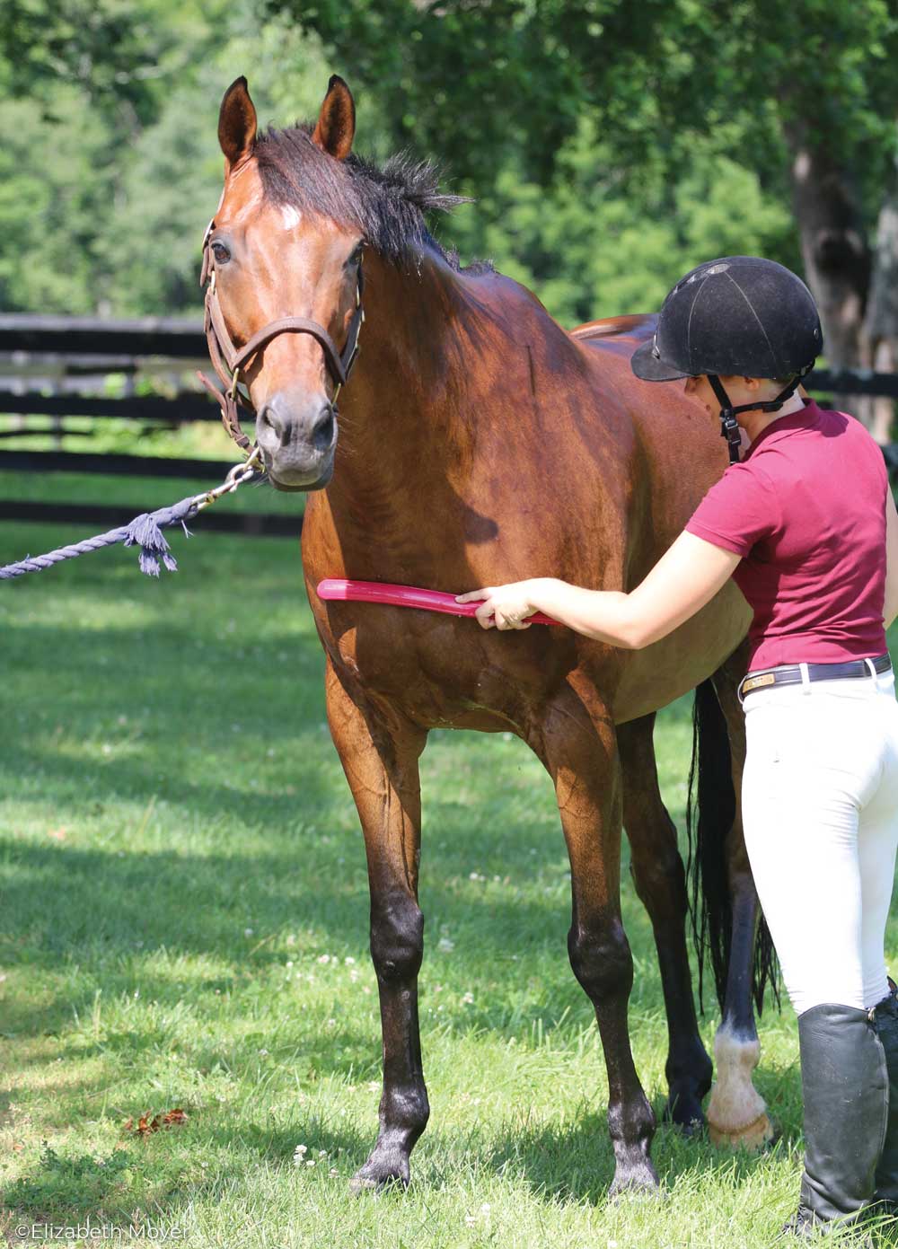 A quick bath after a hot ride is a welcome relief, too. This not only rinses off sweat, which can turn into a salty crust and cause skin irritation, but also brings down your horse’s body temperature.