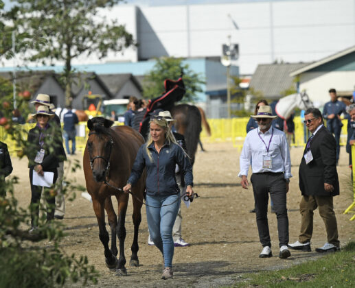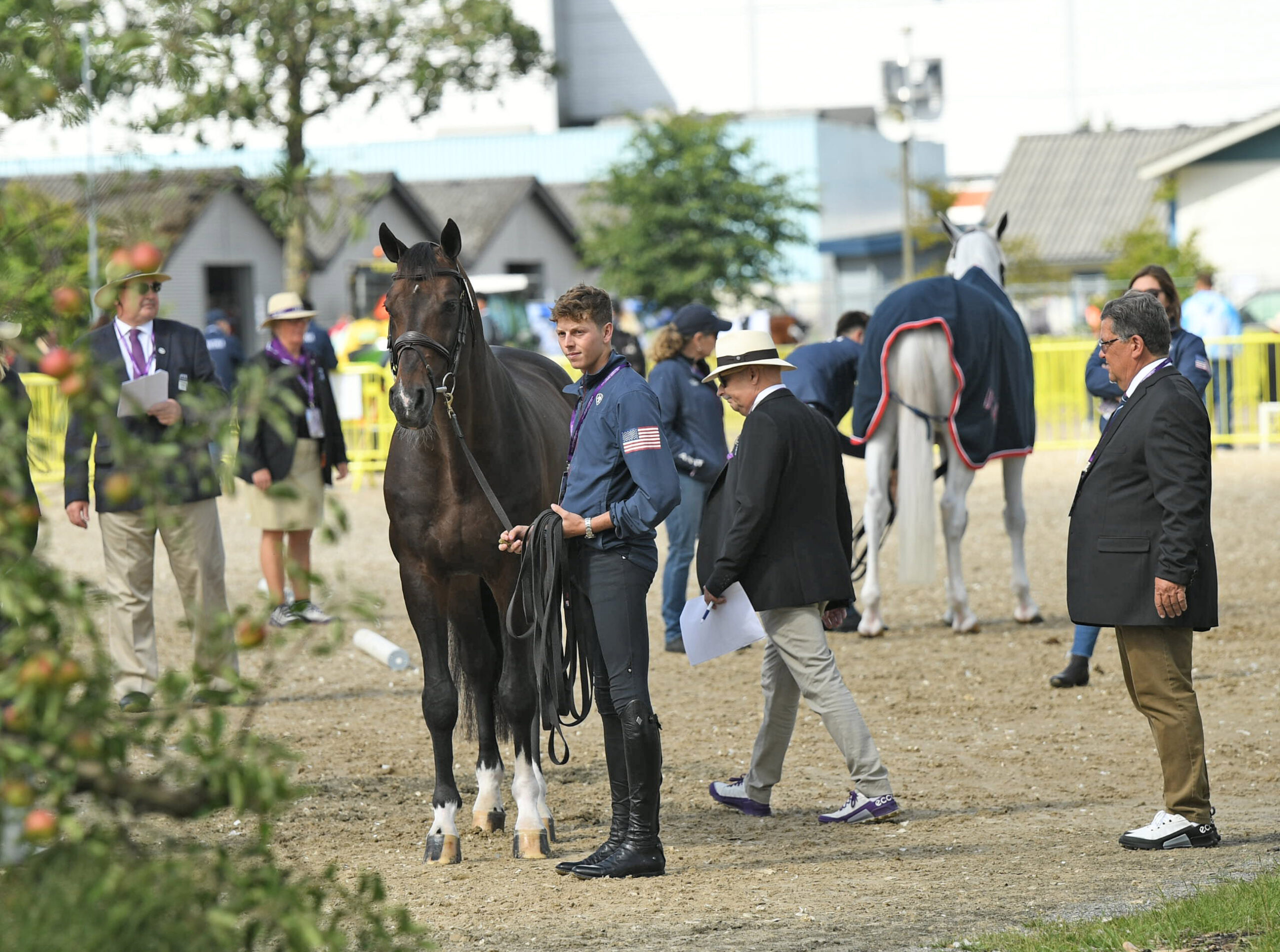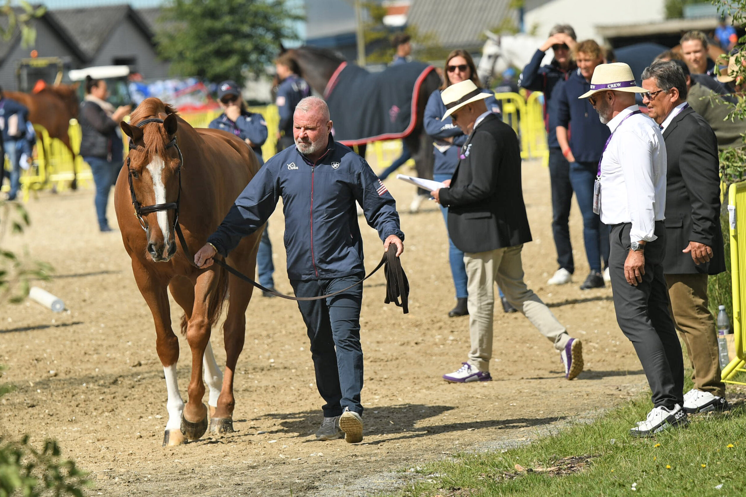 The U.S. Show Jumping Team for Herning 2022, including their traveling reserve, presented their five horses for the first horse inspection on the morning of Monday, August 8. Four of the five horses passed on first inspection, but reserve rider Jessica Springsteen’s RMF Zecilie was held for re-inspection which will happen on the morning of Tuesday, August 9.