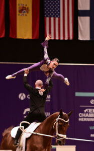 On day 4 of the 2022 FEI World Championships in Herning, Denmark, three equestrian disciplines were in action. The vaulting competition resumed in the Jyske Bank Boxen arena where the men’s and woman’s vaulting finals concluded with their freestyle classes and the vaulting squads also presented their freestyle routines. Over in the Stutteri Ask Stadium the Grand Prix Special determined the individual medals in dressage. And, the show jumpers opened their championships with the first horse inspection.
