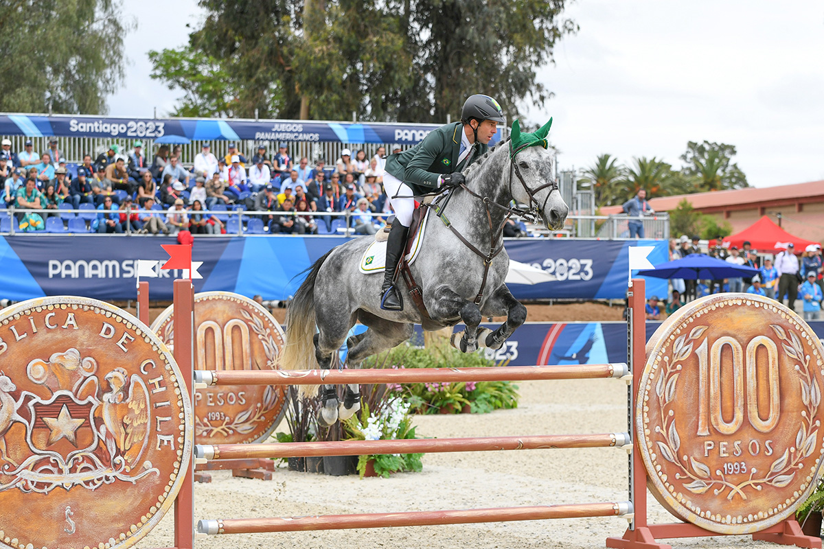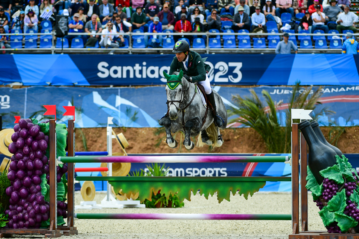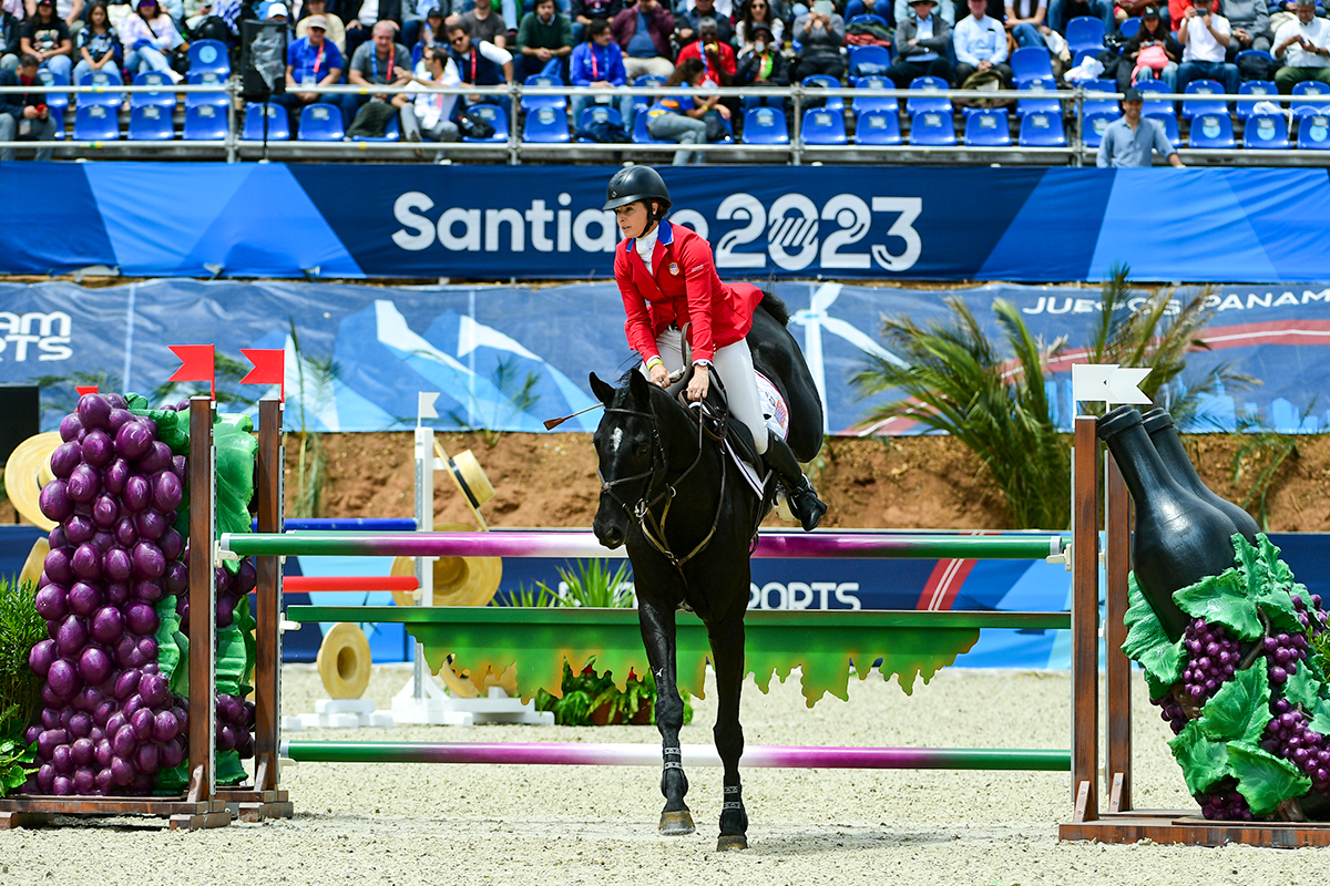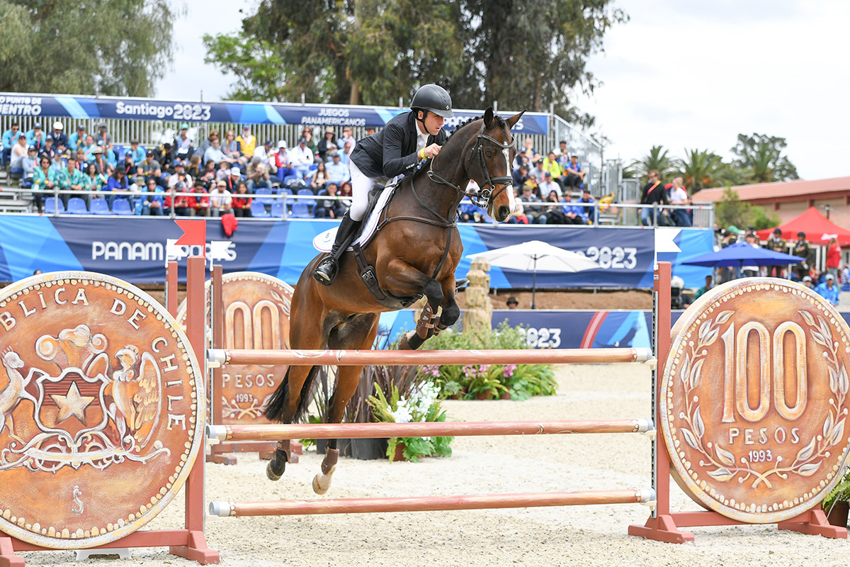 Yesterday was the first day since the 2023 Pan American Games began in Chile that it rained here in Quillota. But a damp morning gave way to drier conditions and partial sunshine when the show jumping phase of eventing kicked off at noon here at the Grenadier Regiment Riding School. The pressure was on with the push to win medals and to claim the two qualifying spots for the Paris 2024 Olympic Games.