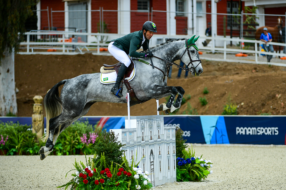 - Marcio Carvalho Jorge and Castle Howard Casanova of Brazil finished show jumping with a nearly perfect round. Just 0.8 time penalties were added to the pair’s score. Photo by Allen MacMillan/MacMillan Photography