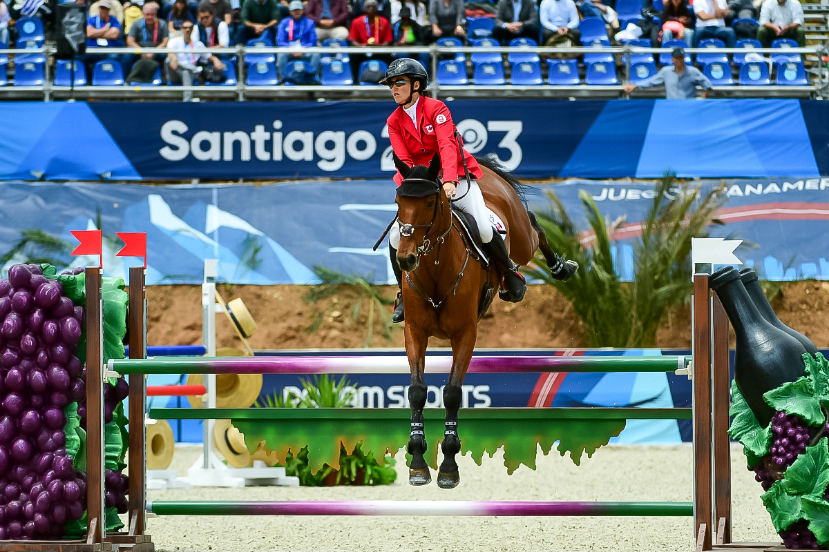 Karl Slezak and Hot Bobo had two rails during the last phase of eventing at the 2023 Pan American Games. Their fourth-place finish was just off the individual podium, but was the second best score for Team Canada. Photo by Sarah E. Miller/MacMillan Photography