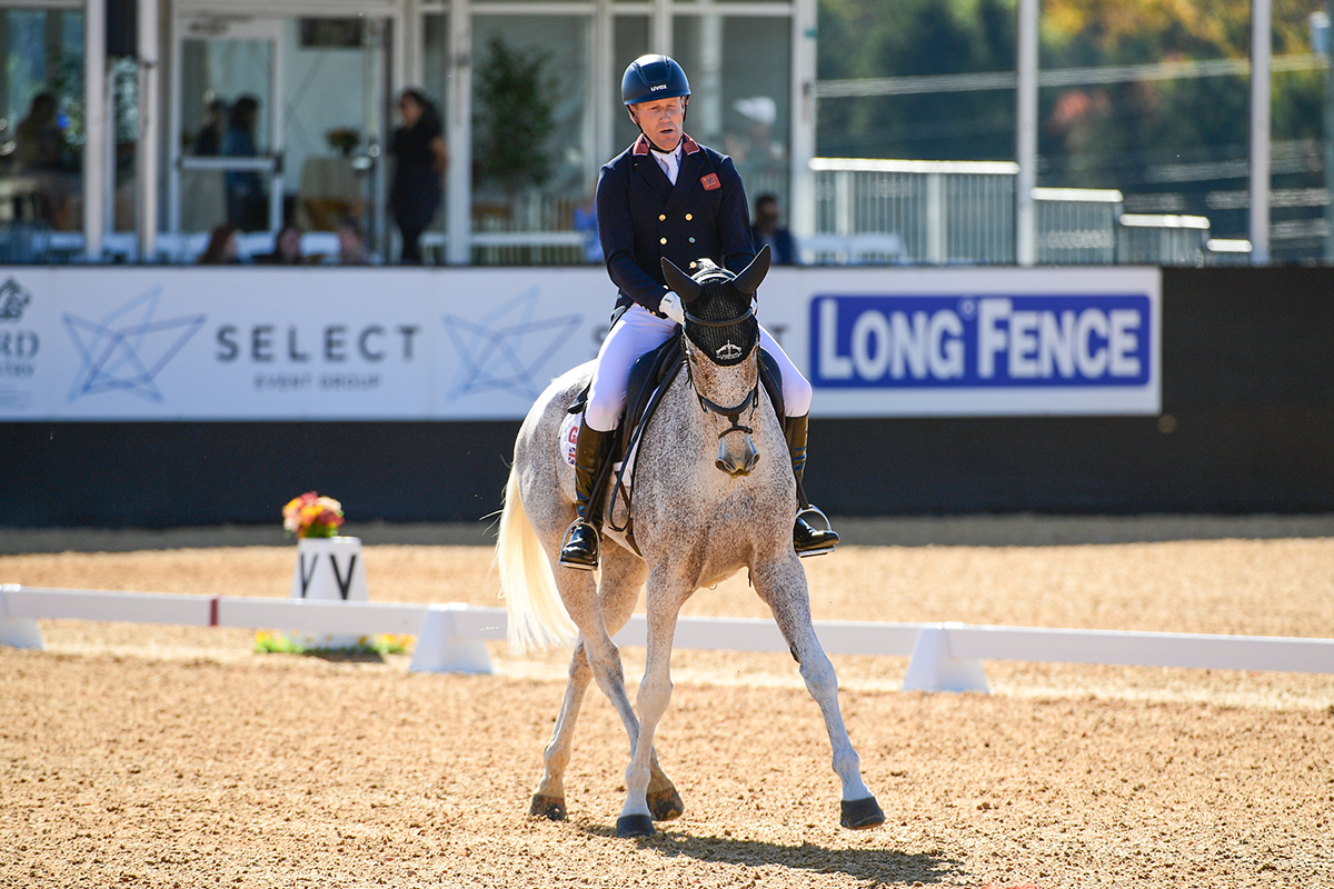 - Oliver Townend and Ballaghmor Class showing lateral work in their 5* dressage test on Friday. They scored 25.6, putting them in fourth place after dressage. Photo by Allen MacMillan/MacMillan Photography