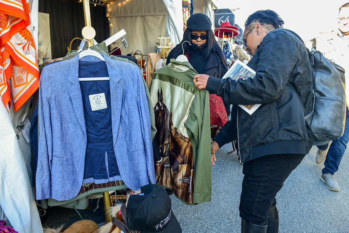 - Shoppers admire a jacket in the Maryland 5 Star Trade Fair. There were a multitude of options for attendees to enjoy: shopping; browsing; education; dining; relaxation; agriculture; pet care; pet adoption; sustainability ideas and resources; local specialty cuisine; area artisans displayed their crafts; live music performances; tack and equestrian clothing and supplies; buildings; arena footing; specialty farrier tools; trailers; horse and human health care, and more. Photo by Kim MacMillan/MacMillan Photography