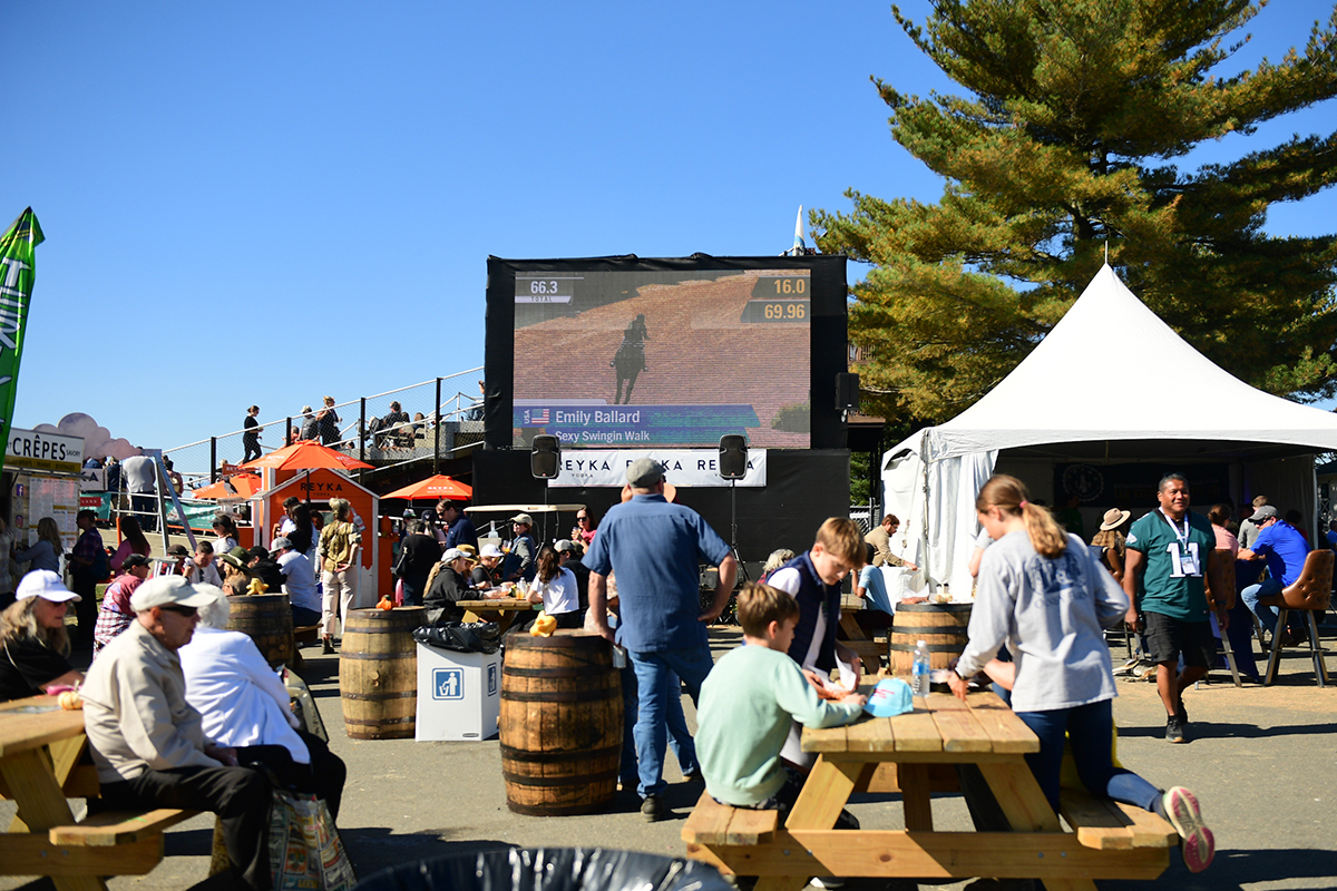 - A big screen television with livestreaming of the Maryland 5 Star looms over the dining area in the trade fair. Photo by Kim MacMillan/MacMillan Photography