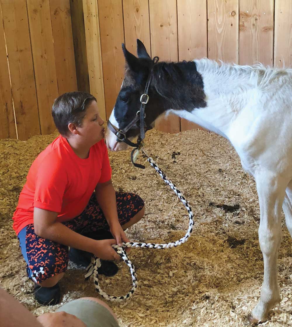 “They became best friends,” John says. As Bandit began to trust his new family, he learned to wear a halter, lead, and pick up his feet for the farrier. John also taught him a few tricks after joining a local Chincoteague pony group. By winter, Bandit loaded onto the trailer again for a trip to the local farm store.