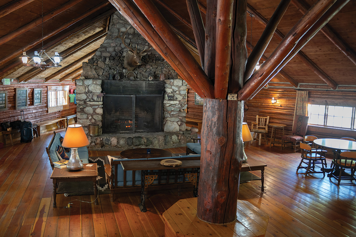 The fire crackles in the lounge next to the dining area, where I enjoy a meal of lasagna and Caesar salad with some of the other other guests, here for day rides or kayaking, canoeing, and fishing. In my quaint riverside cabin, I organize my gear for tomorrow’s pack trip.