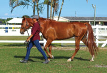 The word will serve as a bridge when you introduce the rein-back from the saddle, lightening your seat and sliding your legs back a bit as you give little squeezes first with one rein and then the other—don’t pull back with both reins simultaneously, and never pull back hard. Overuse of the reins also causes the horse to invert his neck, which creates a hollow back and loss of the correct diagonal pairs of footfalls.