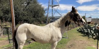 Yumi is living outside comfortably 24/7 and gets along well with other horses. She would make a great companion for any herd and has been out with both mares/geldings. Yumi is handled every day and comes in for grooming by volunteers/staff. She stands quietly for the vet and farrier, so much so that DEHFR’s rehabilitation interns have been learning different standing bandages/wraps and they practice on her.