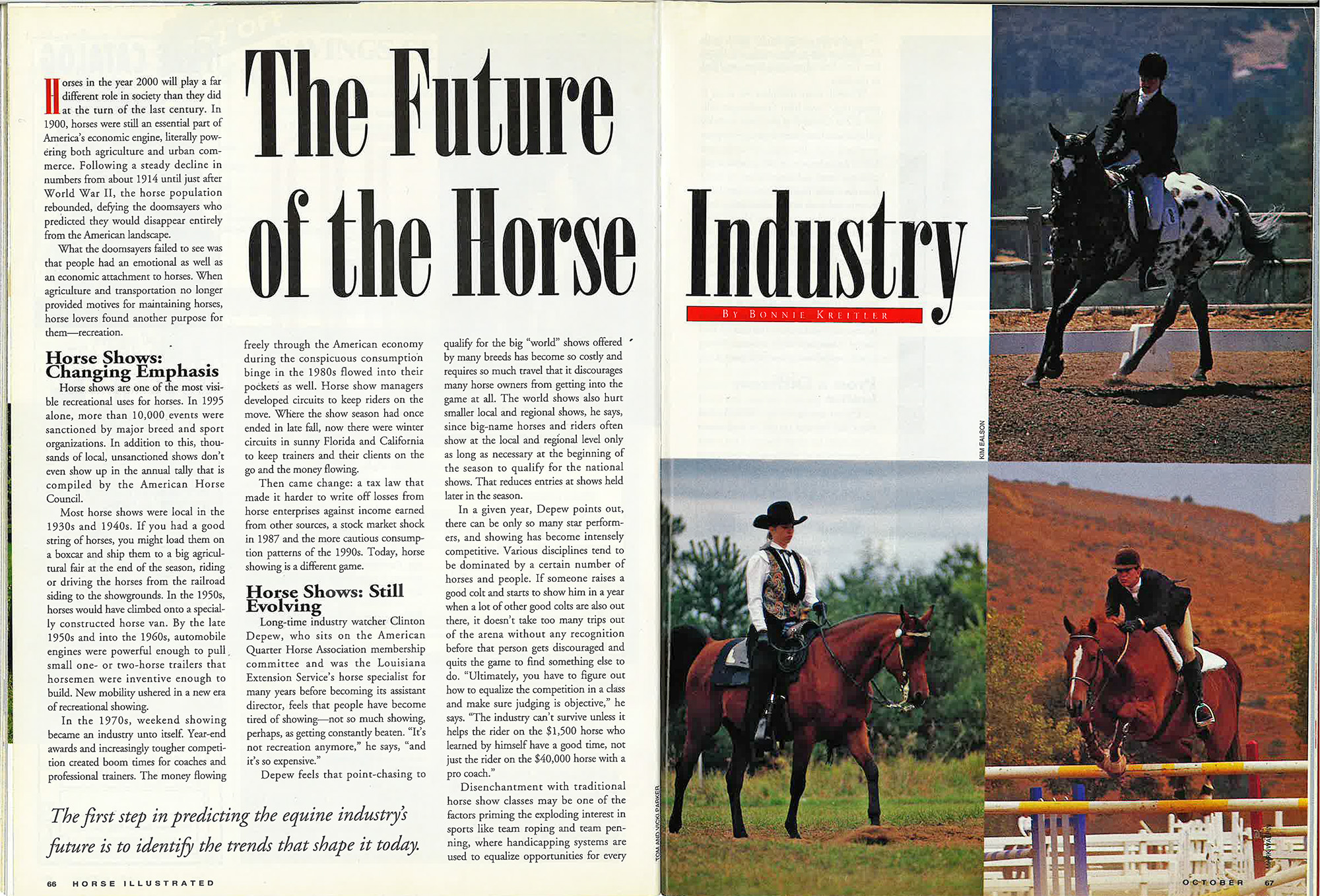 Below is the original article “The Future of the Horse Industry” as it appeared in the October 1996 issue of Horse Illustrated magazine. Click here to view as a full PDF.