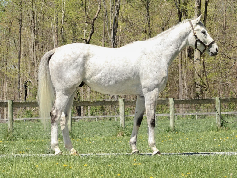 Brandon’s Smile is a 4-year-old, 17+ hand high, gray gelding that came to After the Races in partnership with New Start at Penn National Race Course. “Brandon” raced just 5 times and never did hit the board. Brandon’s evaluations at the farm found him to be a bit weak behind on arrival and subsequent evaluations have found some mild neurological deficits. Neck radiographs showed what may be an OCD around c6/c7. While this will be limiting, it is not career ending.