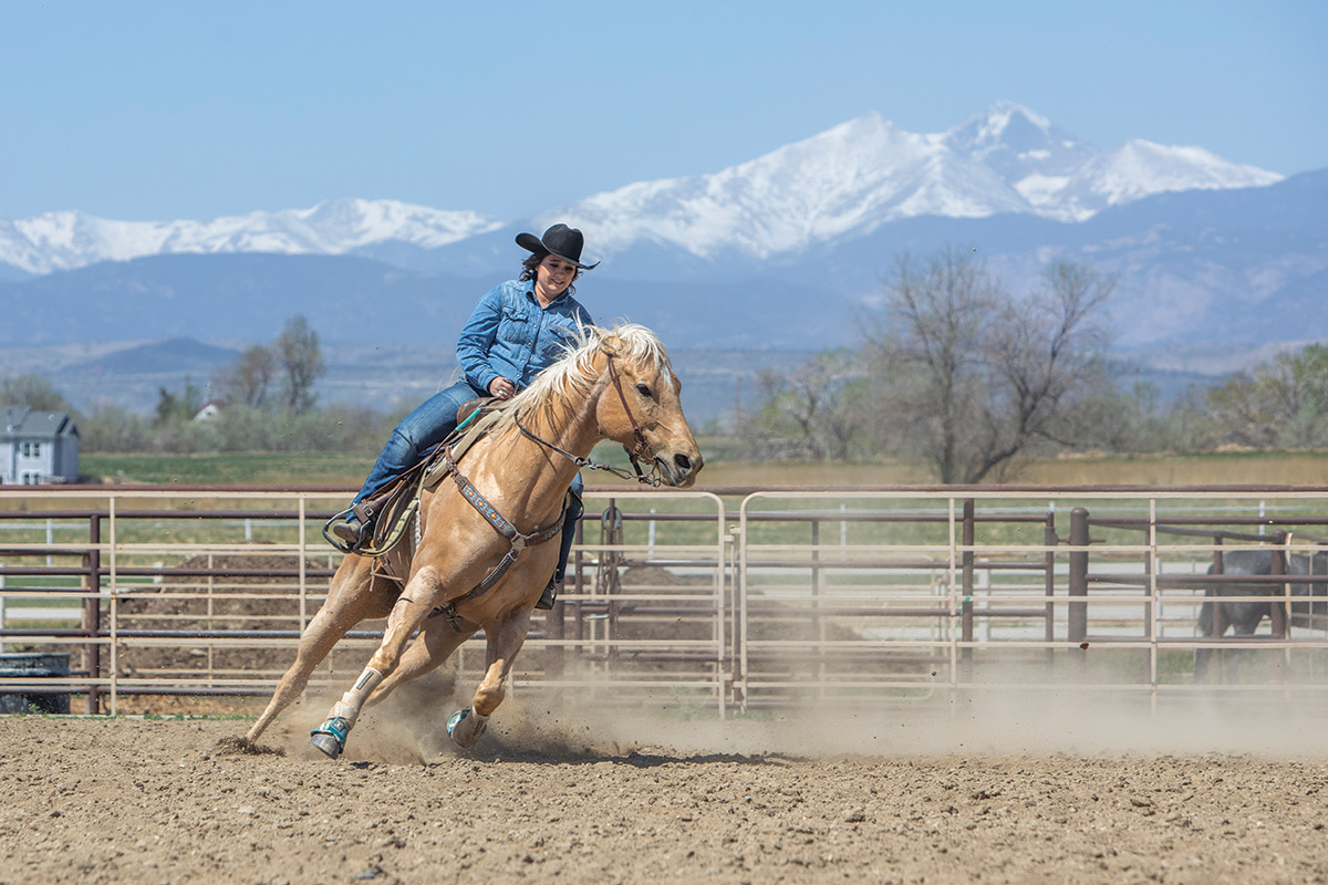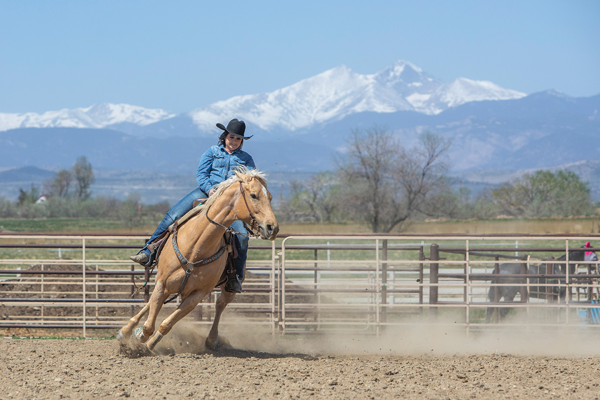 Each time you practice this long line, choose the speed you’d like your horse to go. You can choose to lope slowly or add leg cues as you ask for speed.