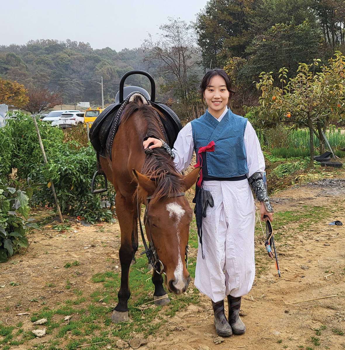 The young woman has been riding for nine years, and for seven of those, she has been training in Korean equestrian martial arts. Today, she is part of a performance group established by Suwon city that demonstrates equestrian martial arts during Korean national holidays and events.