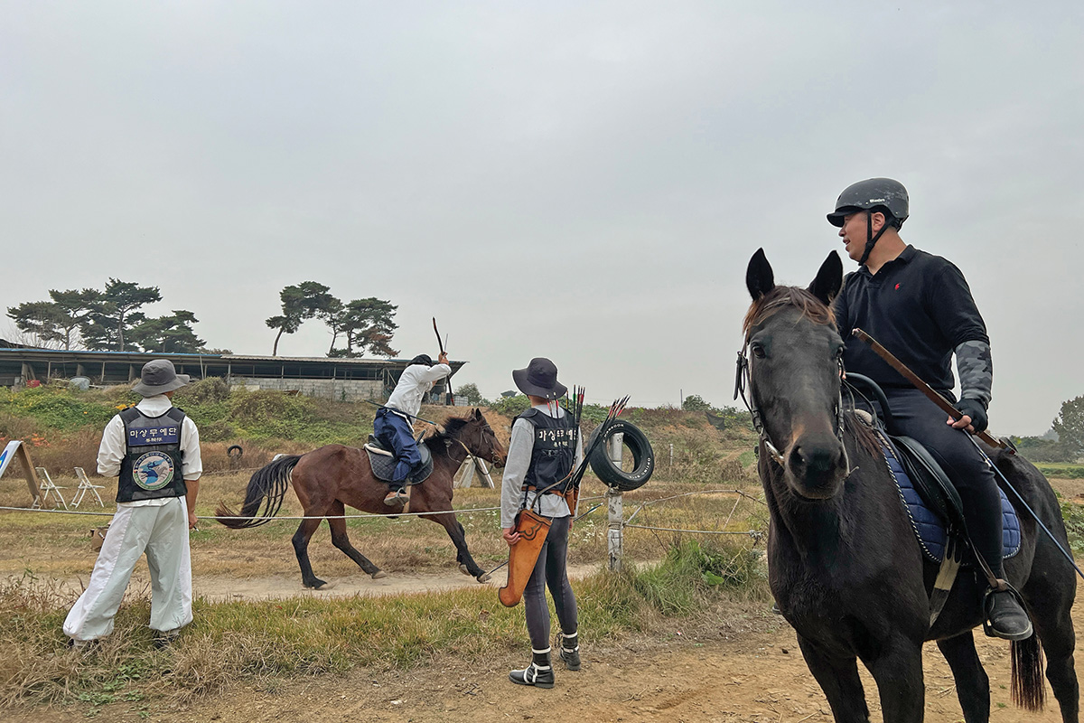 “One of the things that makes this sport fun is that it’s a way of half reading a book and half figuring it out yourself,” laughs rider Bae Kuk Jin, who has practiced traditional equestrian martial arts since 2008, and who also participates in today’s competition.