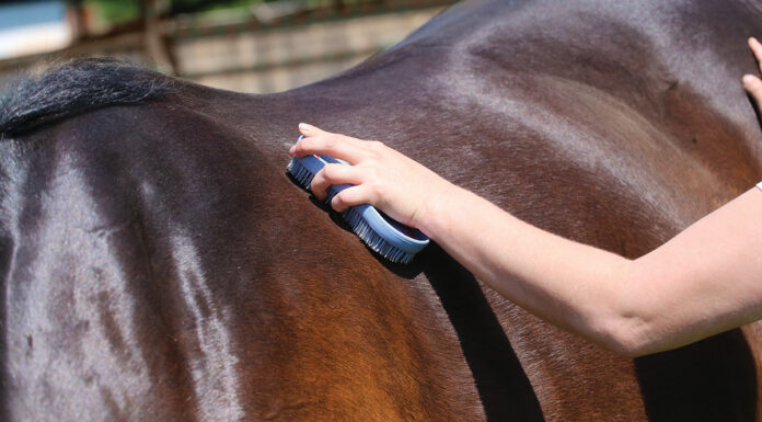 Learn more about grooming a horse to improve his overall health and hair coat and help him look his best. Articles include topics such as tips from the pros for looking good at the shows, mane and tail care, how to wrap your horse's tail, body clipping, braiding the mane and tail, secrets to a shiny coat, ways to optimize your grooming time, tips for bathing a horse, the tools used for grooming, and so much more. In addition, learn how to clean your brushing and other tools with proper maintenance. Compiling a basic kit for your horse is part of good horsemanship. Grooming your equine on a daily basis gives you a chance to look him over for wounds, hoof maladies and general well-being.