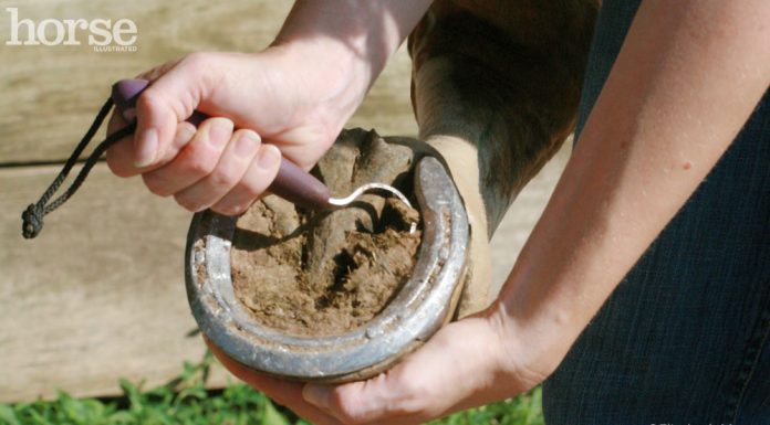 Hoof care includes farriery, picking out the hooves, and dealing with problems with a farrier and veterinarian. Articles include topics such as evolution of the equine foot, dealing with issues (such as laminitis, thrush, abscesses, etc.), using boots for protection, using products such as oil and hardener, dealing with mud, tips from farriers and veterinarians on foot care, dealing with sore feet, helping your horse deal with the farrier, behavior involving the feet, barefoot vs. shod, natural hoof care, vocabulary of farriers, shoeing solutions, care during winter, spring, summer, and fall, and more. If you want to keep your equine partner's feet in good health, then check out the archives of Horse Illustrated for answers to all of your pressing questions involving horse hoof care.