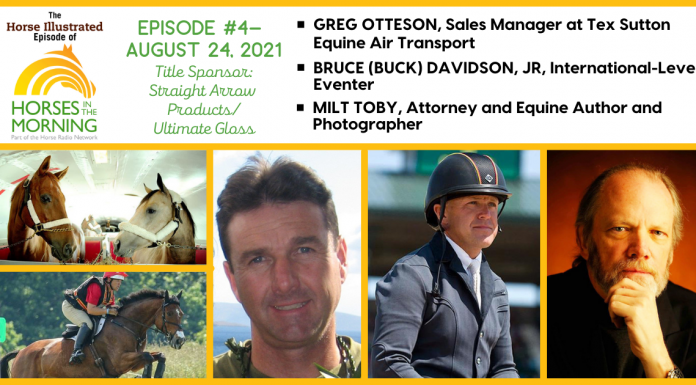 In the 11th episode of The Horse Illustrated Episode of Horses in the Morning, sponsored by Title Sponsor Straight Arrow Products, hosts Glenn the Geek, Holly Caccamise and Sarah Evers Conrad chat with sports psychologist Laura King, clinician Jason...
