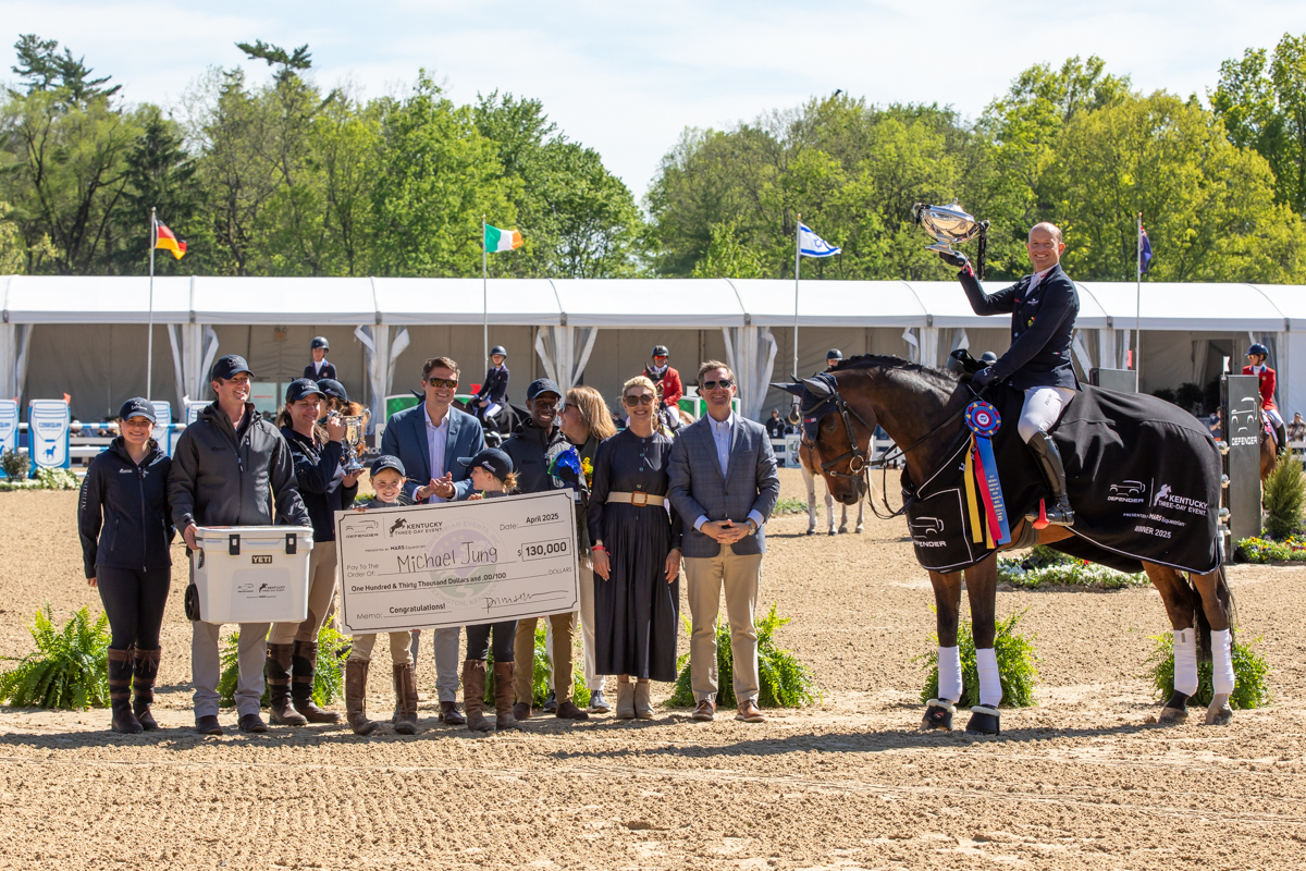 michael jung smiles aboard fischerchipmunk frh after their winning round Michael Jung accepts his awards aboard FischerChipmunk FRH at the 2025 Defender Kentucky Three-Day Event. Michael Jung and FischerChipmunk FRH delight the crowd on their victory lap at the 2025 Defender Kentucky Three-Day Event.