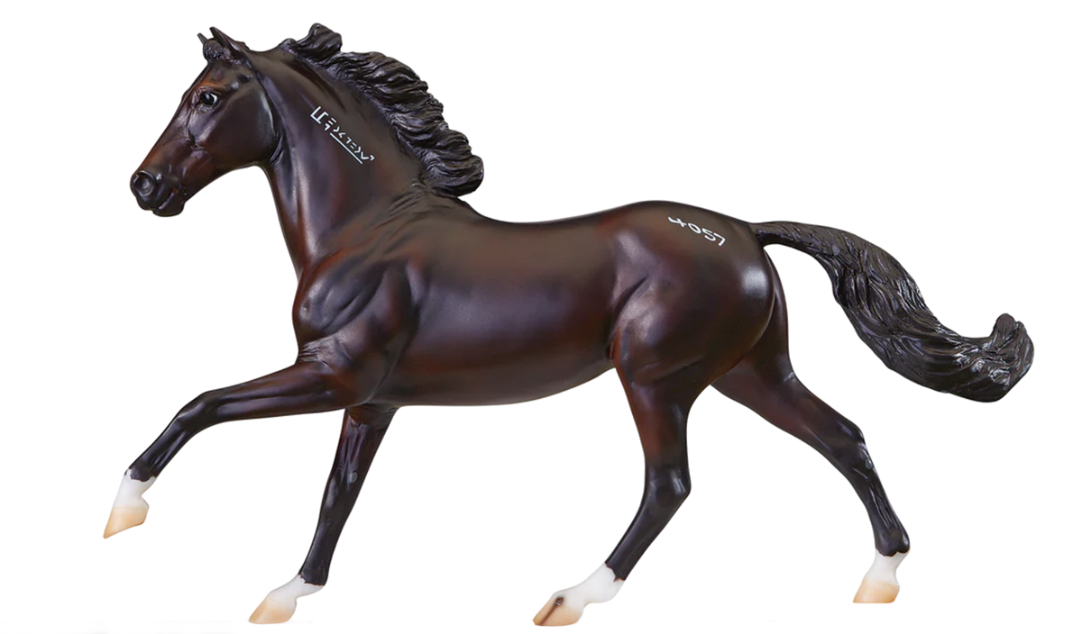 “I’m absolutely thrilled to see such a fresh and unique color on my Breyer work,” says Prosser of Mooney’s unique pattern. “I’ve always been a fan of colorful horses, having owned several myself, and the color dresses up the sculpture beautifully!”