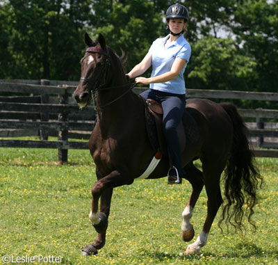“The most important thing for a saddle seat show horse is to look fresh and happy in the ring,” says Hall. “You don’t want to ride a horse through the same boring routine every day because he won’t be happy.”