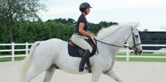Finally, seek honest feedback on your horsemanship from a professional coach or trainer. Without realizing it, you may be gripping with your heels or pushing with your seatbones, essentially revving up your mare’s engine. Once you’ve created that much energy, you literally end up with too much horse on your hands. Altering your riding style to a somewhat more passive half-seat or two-point position may help your mare maintain her cool as she jumps.
