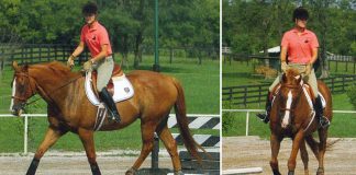Hunters and dressage riders often don’t see eye to eye, but surprisingly in this case we do. Rising trot without stirrups is a fine thing—if and only if, a rider has mastered basic position. This is because riding without stirrups is meant to increase the rider’s balance. Scott Hofstetter, top hunter rider, coach and judge from Ocala, Fla., points out that in the Medal and Maclay classes, riders are asked to jump a course without stirrups to show that they have good balance. So for someone who lacks good balance, working without stirrups is exhausting and difficult. Unbalanced riders will compensate and balance on the horse’s mouth and/or grip tightly with their legs. Therefore, make sure you can check off the following before you cross your stirrups over: