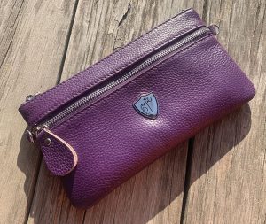 Say hello to this Purple Grand Prix Wristlet from Black Knight. The wristlet comes with several options to personalize it. Add a nameplate in black or silver. Simply attach the wristlet to any belt for hands-free storage at the barn on in the saddle. Add a chain to built-in hooks to create a stylish clutch when not at the barn.