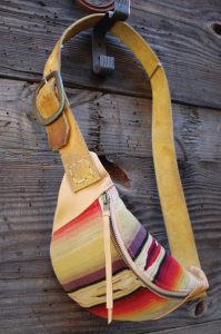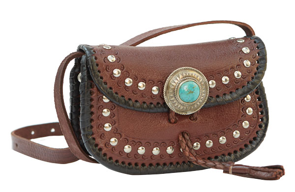 This beautiful leather belt bag is another perfect option for the western rider. Silver studs, a pop of turquoise and braided leath-er tassel details makes this bag an eye-catching accessory.