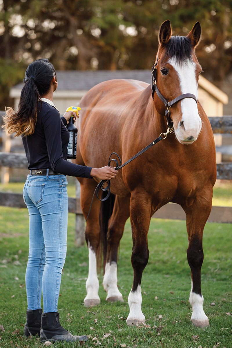 “First, consider the type of flies that are prevalent in your area and choose a spray that targets those specific types of flies,” says Machtinger. “Next, consider your horse’s individual needs, such as any skin sensitivities or allergies. It’s also important to consider the spray’s effectiveness and how long it will last, and finally the ease of application and whether it requires dilution or not.”