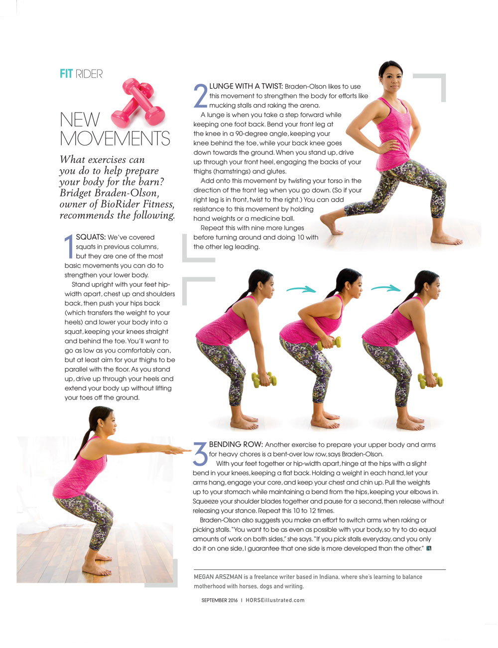 “There are a lot of things I think we do in the barn that just wreck your body, and we don’t even think twice about it,” says Bridget Braden-Olson, owner of BioRider Fitness. “The best thing you can do for your body is to prepare it for the work you’ll do, and that’s with strength training.”