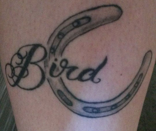 If your design is centered on lettering, rather than a drawn image you may consider a tattoo of your horse’s name, club name, or even an inspirational phrase (or what your trainer is always yelling.) If your horse has an identification mark, such as a Thoroughbred with a Jockey Club number tattooed under his upper lip or a Quarter Horse with a ranch brand on his hip or neck, you may consider one to match.