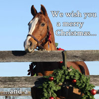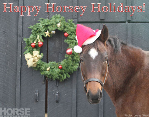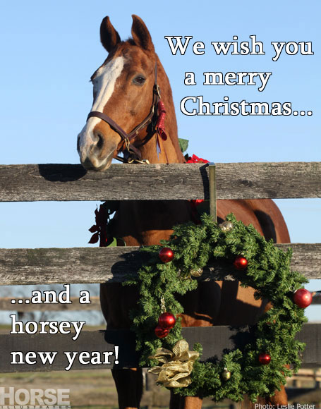 Put horses in your news feed! Share these Christmas, Hanukkah and New Year images with your friends and family on Facebook this season. Click any of the thumbnail images below to see the full-sized version. From there, you can save the image to your computer to share with friends. Or head over to Facebook.com/HorseIllustrated and share our images straight from the source!