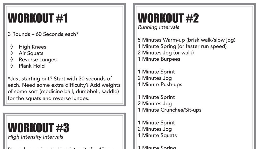 Looking for some inspiration when you hit the gym? Here are some workouts you can do at home, the barn or at the gym to help kick your fitness resolutions back into gear.