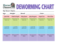 | Dewormer Chemical Classes The downloadable chart provides a breakdown of the many equine dewormers on the market today. Click here >> | Horse Deworming Chart Print this comprehensive chart to easily keep track of deworming. Click here >> |