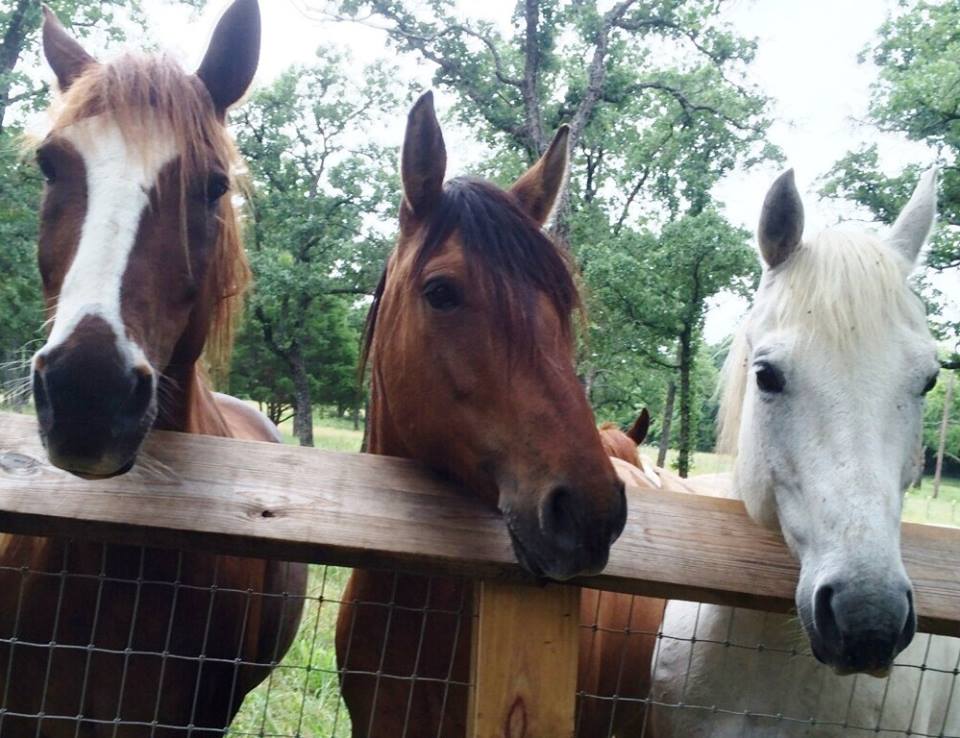 “The Three Amigos Blaze (TWH), Koda (Mustang), and Blue (QH) — These three were inseperable.” Photo shared by Kathy Halbrooks Jackson on Facebook.