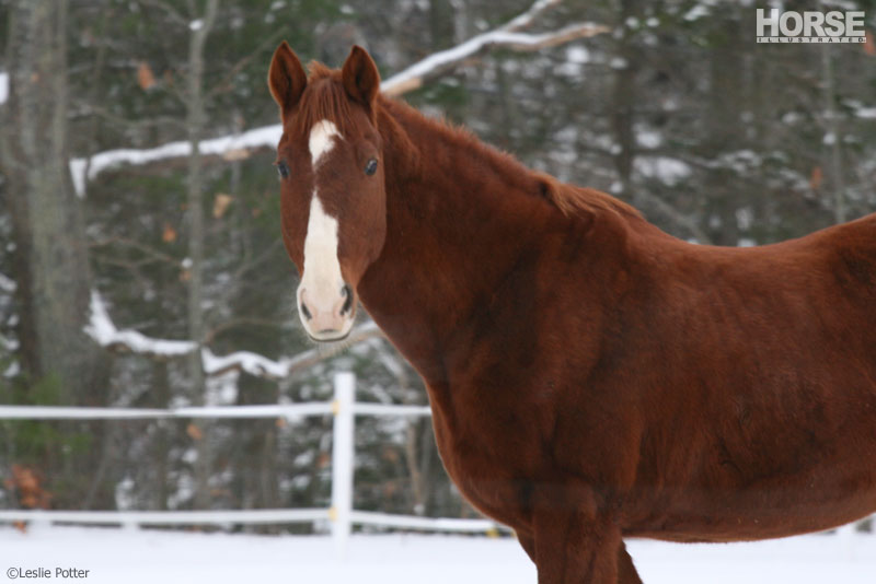 Even if you don’t ride during the winter, groom your horse regularly—daily if possible. Regular grooming and handling provides the opportunity to evaluate your horse and alerts you to problems such as illness, injury, weight loss, lost shoe, cracked hooves, et cetera. It’s up to us, as owners, to intervene as quickly as possible when something is wrong. Catching a problem early on helps put your horse back on the track to good health.
