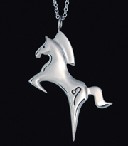 | The Epona Collection by Slane & Slane includes this pendant: an 18 karat gold horse set in textured sterling silver. $1,400; small pendant with 16” chain $730 |