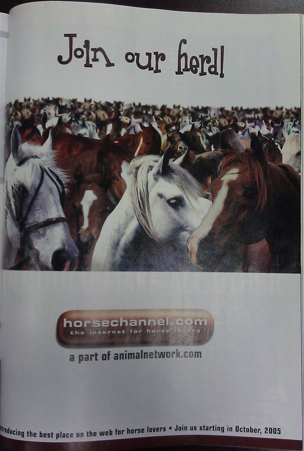 In 2005, the once-celebrated World Wide Web had become a wasteland of abandoned Friendster profiles, broken dreams courtesy of Match.com and a sickening reminder of fortunes lost through misguided investment in Pets.com. And then, from the rubble rose horseillustrated.com, the website for horse lovers! It was a shining beacon of useful news and information; a place where admirers of the equine could enjoy fellowship with like-minded denizens of the Internet.