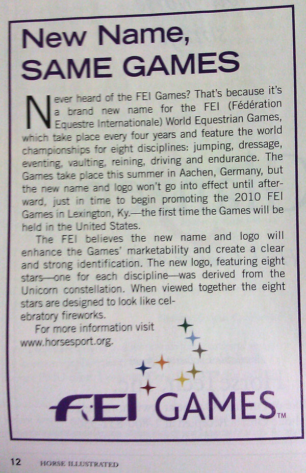 Click for larger imageThe 2010 WEG had been awarded to Lexington, Kentucky by 2006. Originally, part of the marketing effort was to shrink the games’ unwieldy moniker to simply “FEI Games, ” as we reported in 2006. However, the plan for a snappy title changed when Alltech stepped in as the title sponsor, adding a few syllables rather than subtracting them. It certainly worked out for the best in the long run, as Alltech’s financial backing allowed for better promotion and implementation of the event. Read more down below in the 2010 section.