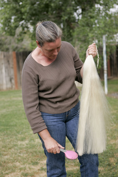 Tail Extensions Step 44.Get your tail extension and brush it before weaving it into your horse’s tail.