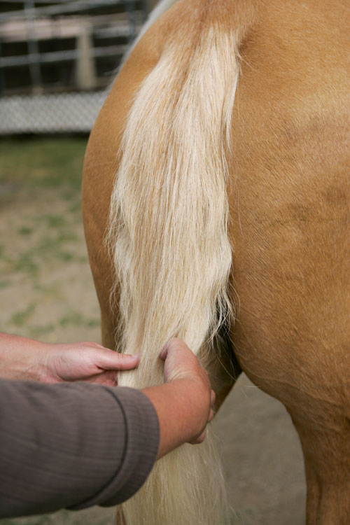 Tail Extensions Step 1111.The top of the tail extension should not be visible under your horse’s natural tail hair.