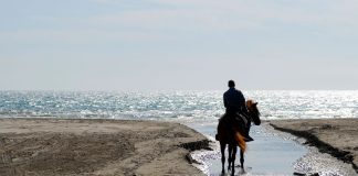 I love riding with a dog at my side. Just I ride with a border collie, and she’s great with the horses. Just make sure horse and dog know each other well and that the dog obeys your commands without hesitation when on the trail and you’ll have a marvellous time.