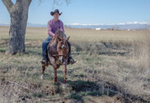 Hall tries to keep his horses moving forward down the trail rather than focusing on the object of fear. “I want my horses to be forward-thinking without much hesitation,” he says. To get his horses moving forward, Hall maintains contact with his legs and reins, and encourages them to continue down the trail at whatever pace they were going.