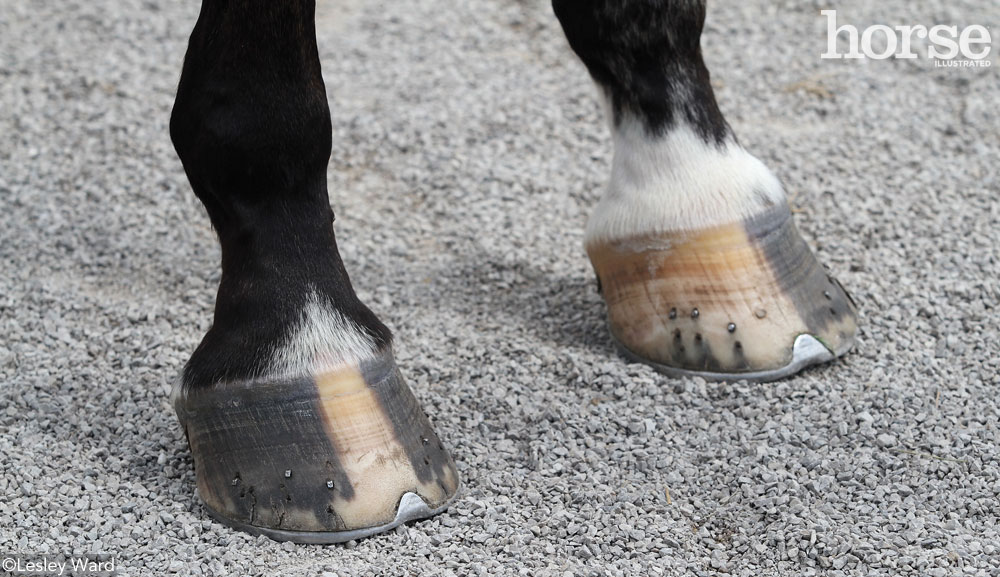 Ensuring that your horse is properly shod can also have an impact on his soundness; long toes and under-run heels can exacerbate lameness. Toe length can be shortened, and wedge pads can compensate for low heels.