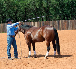 A: Many horses will accept an object as long as it’s at their eye level or below. But when it goes above their eye level, especially if it moves and makes a noise like a lariat does, most horses will get nervous. This is a survival instinct that prevents wild horses from getting caught off guard by a predator.
