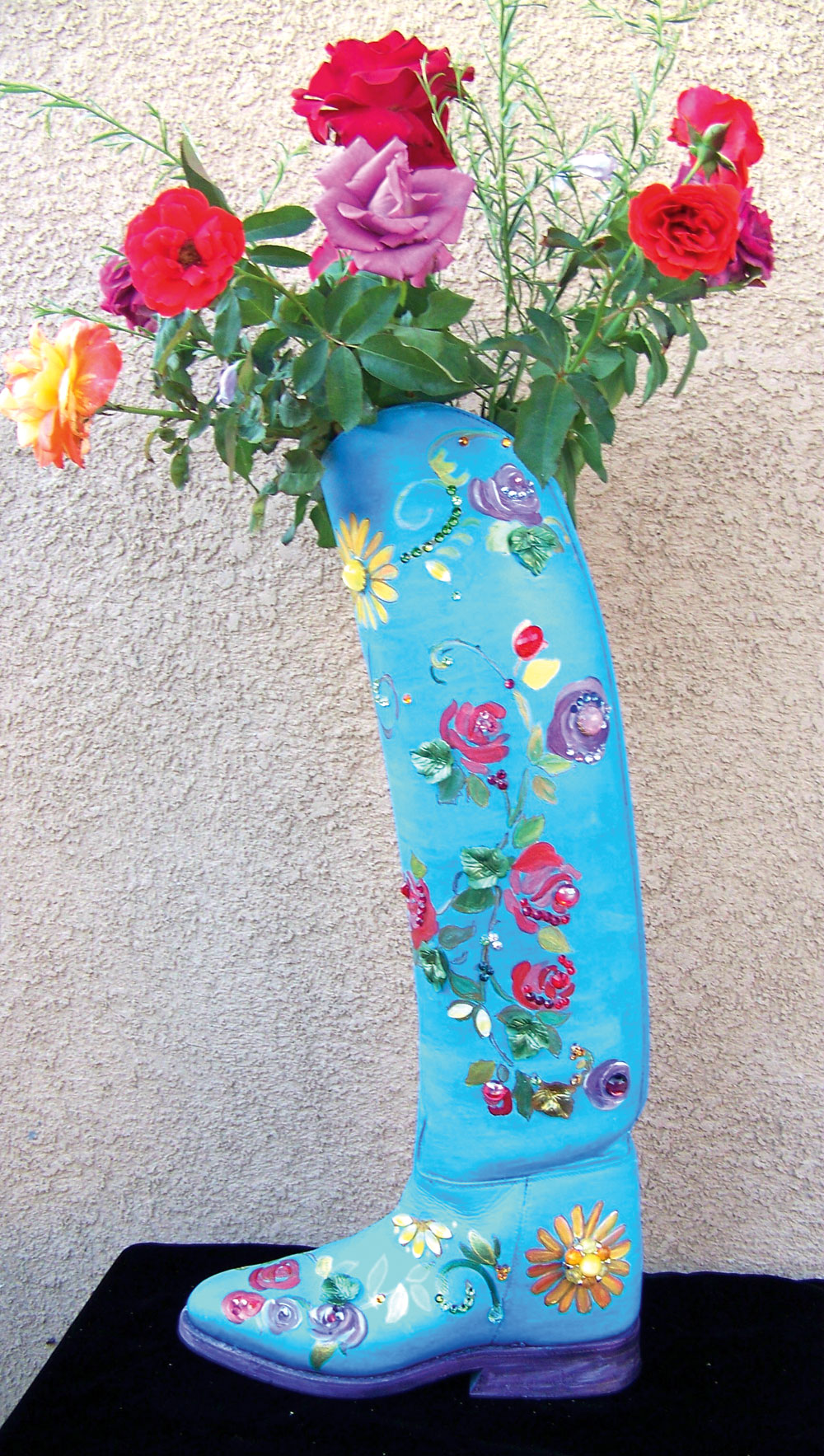 Your rebooting project will definitely be used more frequently if it’s stabilized with a combination of sand and plaster of Paris. The process is a bit tedious and potentially messy, but the reward is a one-of-a-kind flower vase or decorative container. It also makes the perfect gift for that horsewoman in your life who already has everything.