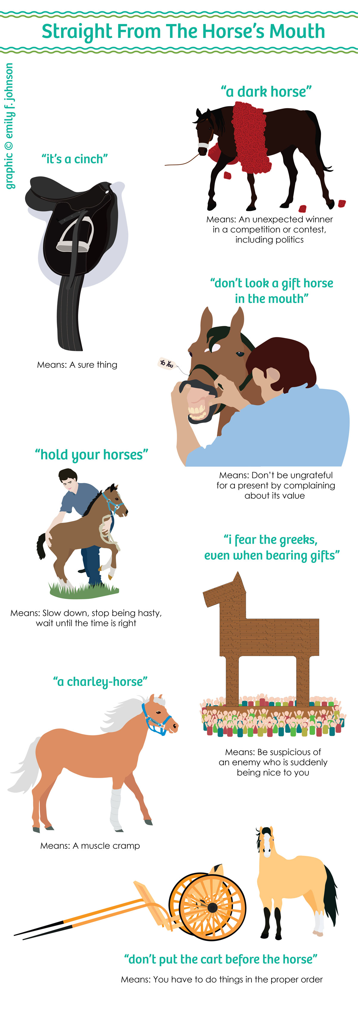 When it comes to horses, modern English is full of phrases and clichés with an equine origin. Sometimes these phrases can still mean what they originally did, but many times a more generic meaning has come to be attached to them. Enjoy reading about how some of these unique phrases came to be.